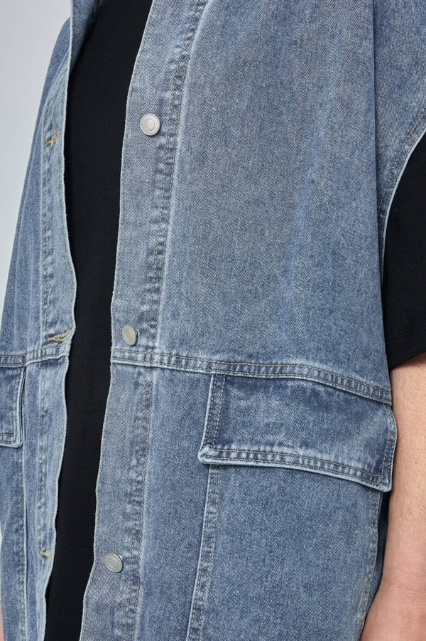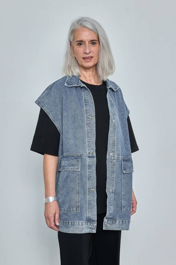 ♡ Lange jeans jas zonder mouw en voorzien van knopen