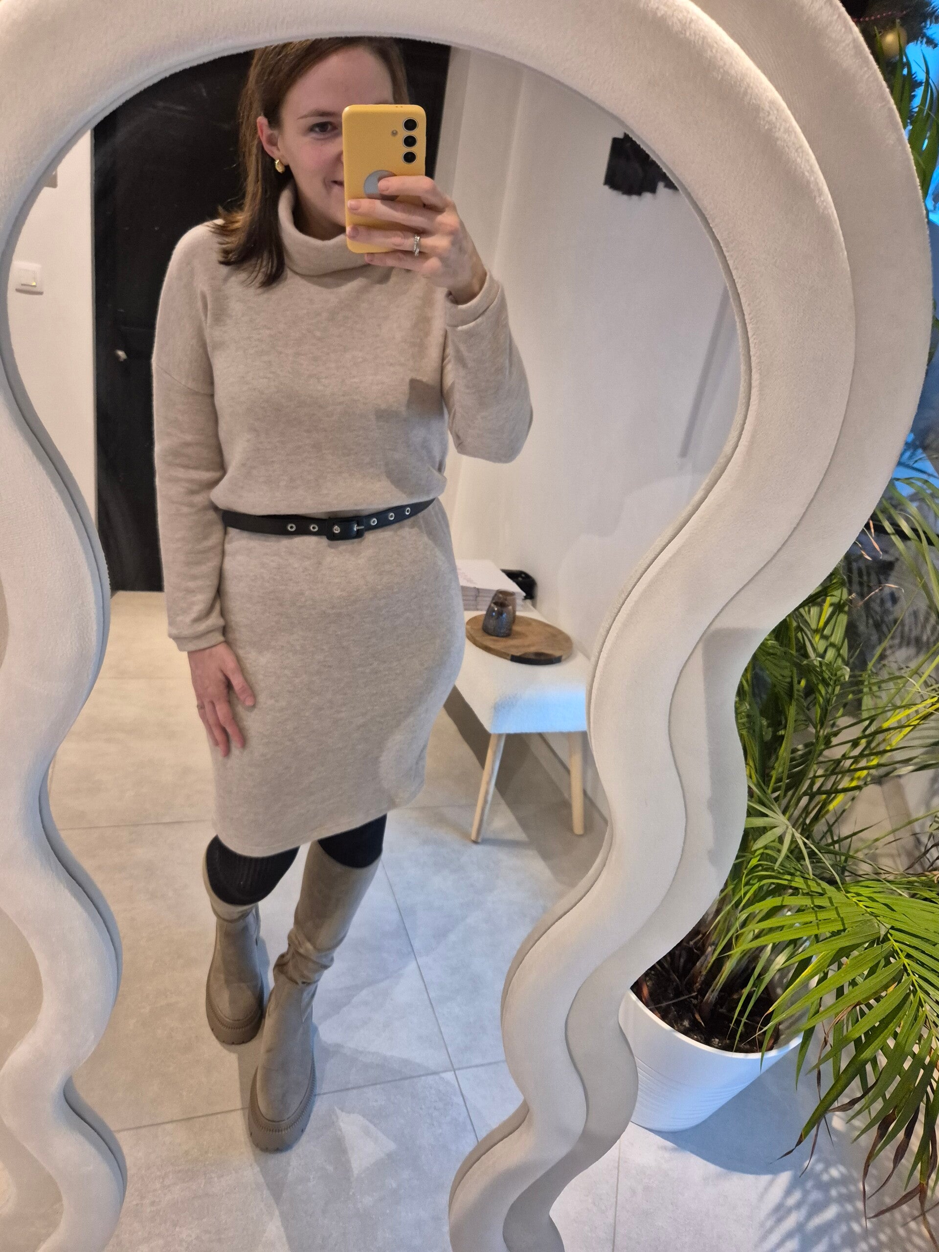♡ Trui jurk met rolkraag en voorzien van een leuk riempje om een taille te creëren.