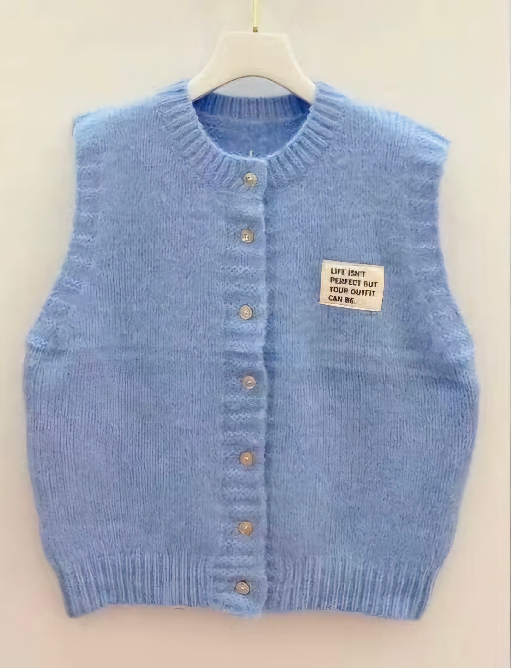 ♡ Prachtige trui zonder mouw en leuke quote 'Life isn't perfect, but your outfit can be.'
