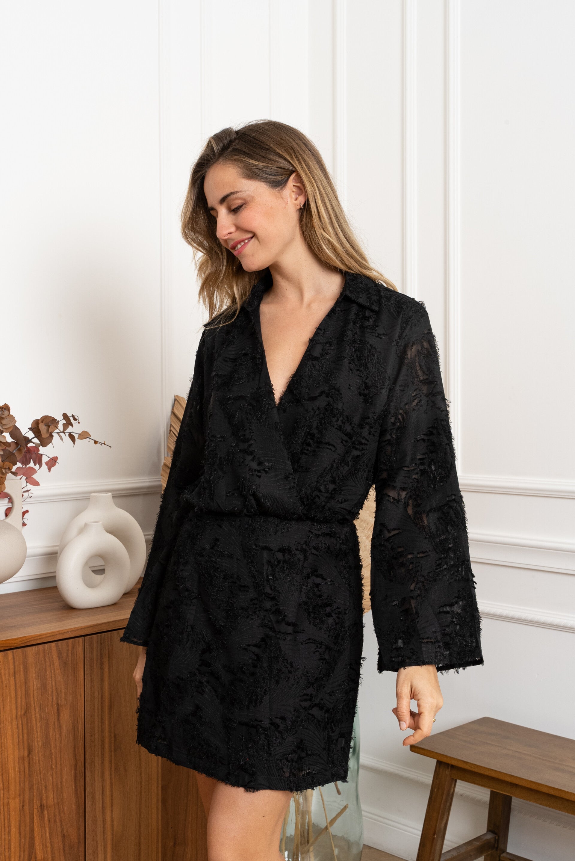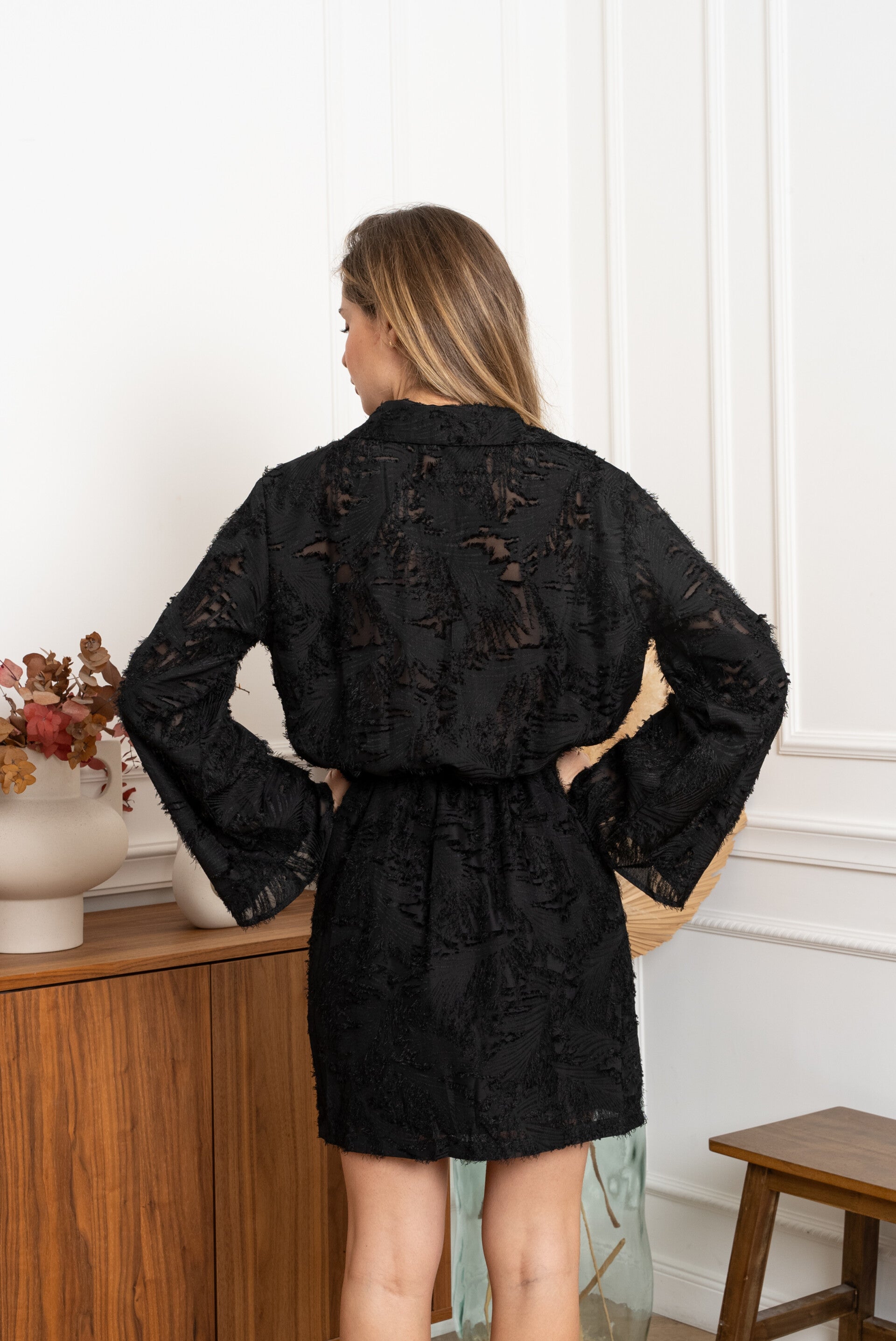 ♡ Feestelijke jurk met lange mouw en elastiek ter hoogte van de taille
