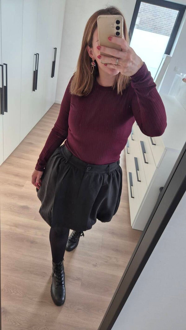 ♡ Elegante burgundy blouse met ribbel patroon en lang mouw