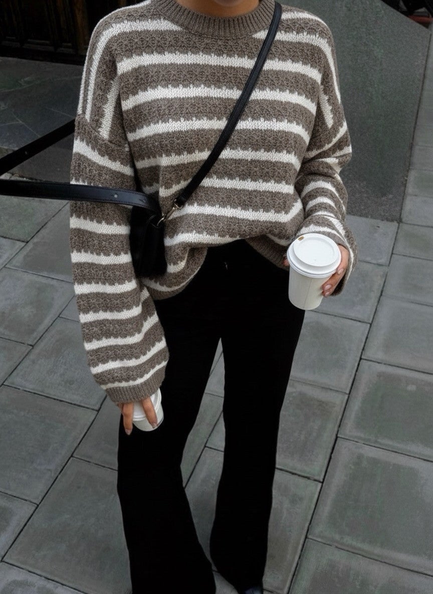 ♡ Prachtige, gestreepte trui. Rechte, relaxte pasvorm met een zacht en warm gevoel.