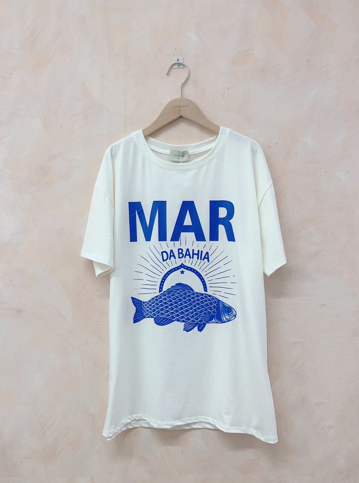 ♡ Leuke T-shirt met print en opschrift in het fel blauw.